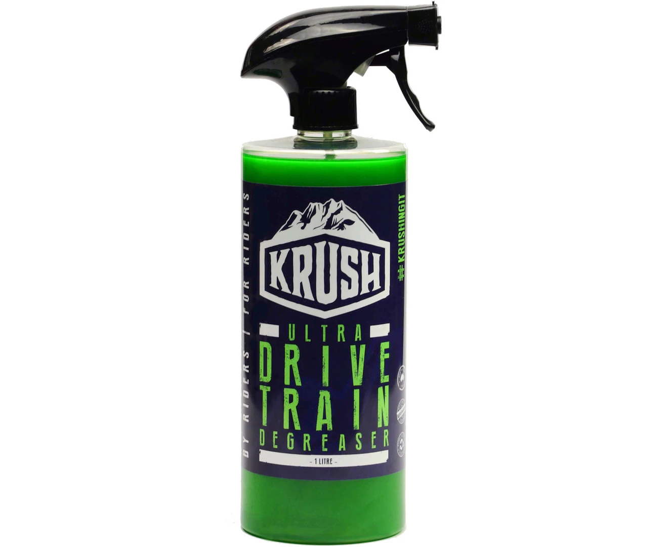Krush Ultra Drivetrain Degreaser is a powerful citrus based degreaser tailored to meet the maintenance needs of the modern MTB drivetrain. We put our bikes through hell all year round on dry dusty trails full of abrasive grit, from winter shreds through to foot deep mud ruts, pushing our bike drivetrain to its limits. With this kind of punishment it’s key to take the time after every ride to clean your chain, chain ring, cassette and derailleur with the right products to revitalise your drivetrain components ready to do it all over again. Krush Ultra Drivetrain Degreaser has been specifically designed to strip out old chain lube, grease, dirt and grit, which if left untreated can drastically reduce the life and performance of your drivetrain components.
