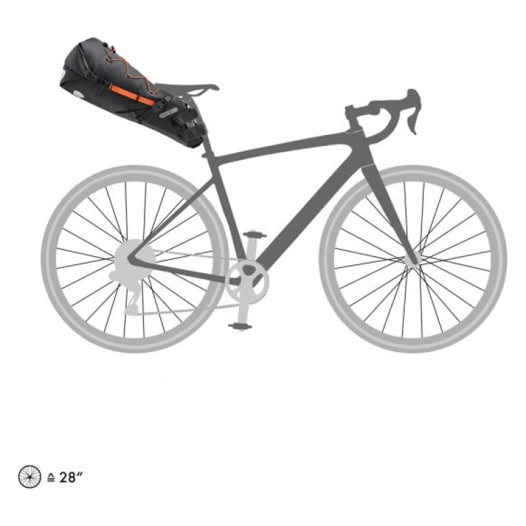 Get ready for your next bikepacking adventure! As a key item in your bikepacking setup, the ORTLIEB Seat-Pack comes with Velcro straps to enable convenient and secure mounting to your seatpost. Projecting backwards from the seatpost, your Seat-Pack also serves as a rear fender. The spacious, waterproof Seat-Pack keeps its contents (e.g. an extra set of clothes) safe and dry. Depending on how long you plan to be away and your Seat-Pack model, you can conveniently adjust the volume of your pack from 8 to 16.5 liters or from 7 to 11 liters by adjusting the roll closures on the sides. An additional valve allows you to quickly and easily compress your soft gear for a more compact fit. Your Seat-Pack also serves as a replacement backpack when you’re out on a day trip, no matter whether you ride a hybrid bike, a mountain bike, a road bike or an electric mountain bike. The Seat-Pack is available in two sizes.