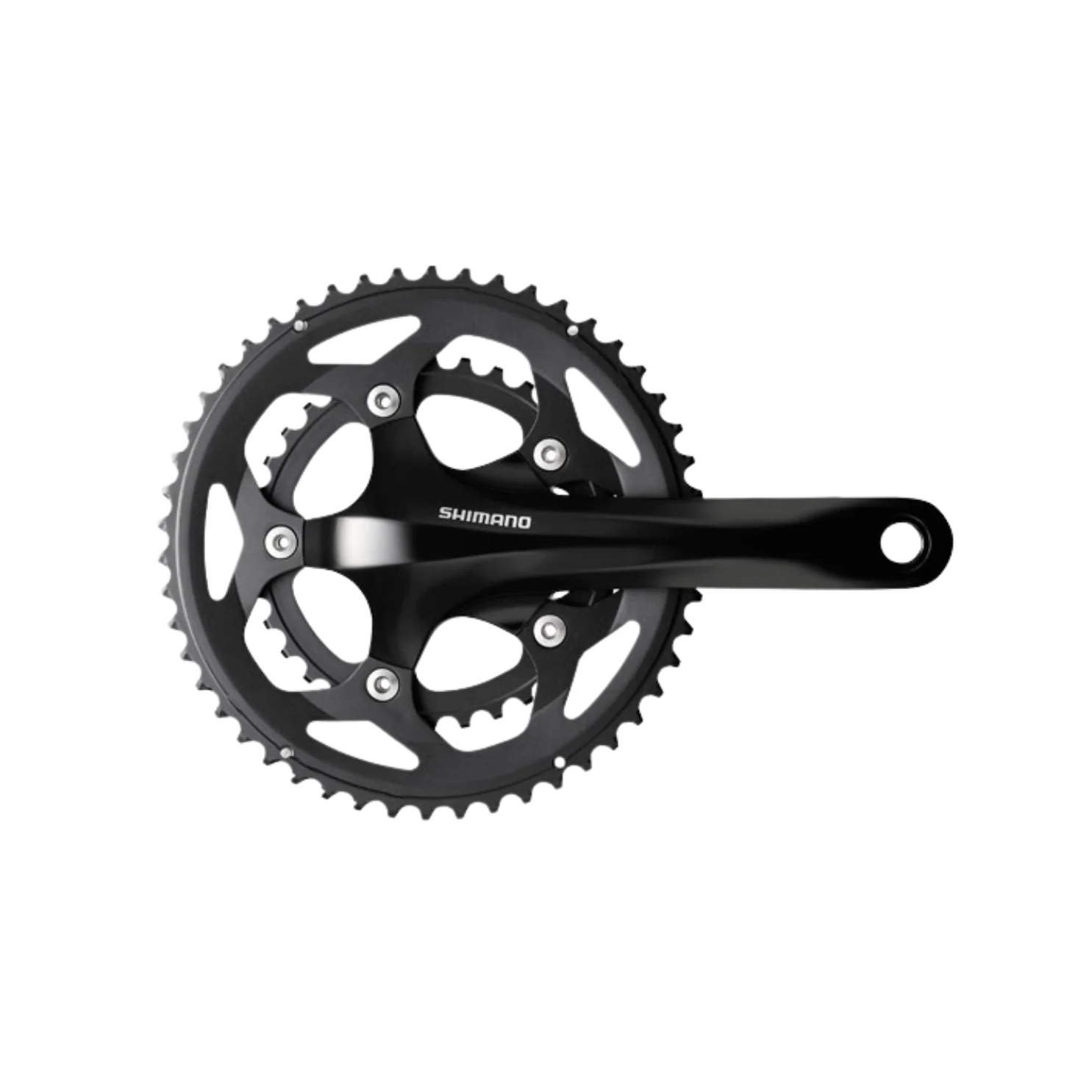 The Shimano FC-RS400 is a 2-piece design compact crankset for 2×10-speed systems and threaded bottom shells with a width 68 or 70 mm. The sleek design and the stylish finish round out the high quality overall impression of this crankset.