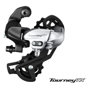 Available in black and silver, the SHIMANO TOURNEY TX800 derailleur is compatible with 8-speed SIS Index Shifting.