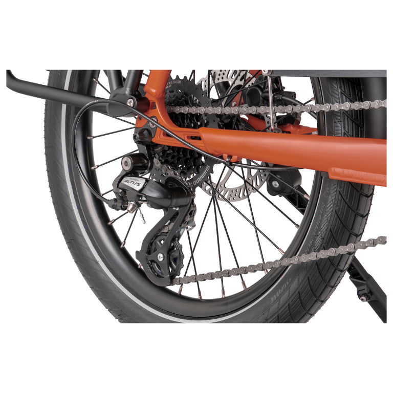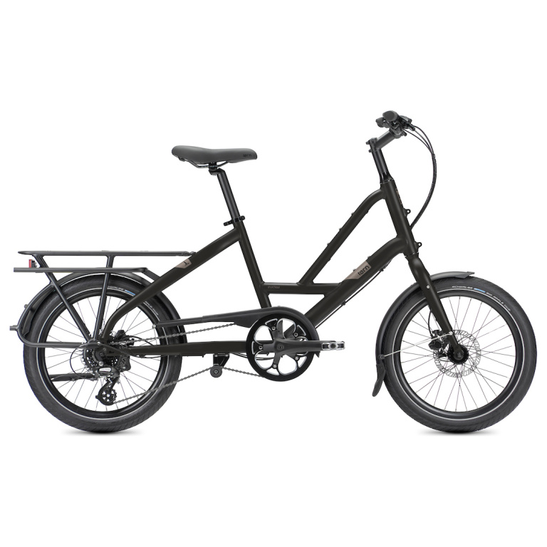 - Compact cargo bike that carries up to 50 kg on the rear rack, plus an additional 20 kg with optional front rack